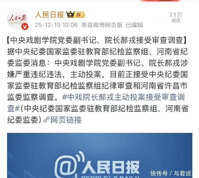 12月19日,中央纪委国家监委突然通报,学院党委副书记、院长郝戎涉嫌严重违纪违法,主动投案了。消息一出,中戏官网火速撤下了他的简历。从明星导师到审查对象,这转折快得让人反应不过来。 郝戎可不是普通老师。他带过中戏著名的96级明星班,章子怡、刘烨、袁泉都是他学生。当年他夸学生用功,说章子怡拍《卧虎藏龙》吊威亚后背青紫,还抽空回学校找老师交流。现在他自己却成了反腐对象。更讽刺的是,就在投案前9天,他还在公开场合说“学做艺先学做人”。这话现在听起来格外刺耳。